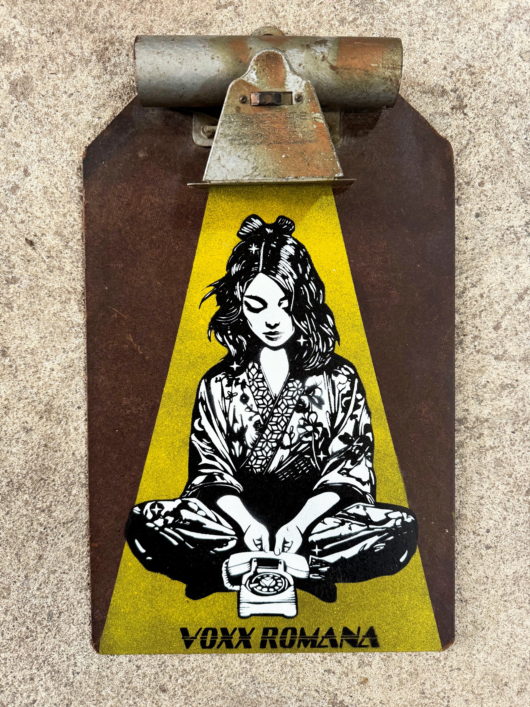 Original multi-layer stencil spray painted on wood panel by artist Voxx Romana, created 2025. The artwork will be professionally packaged and shipped with tracking info. The artwork comes with a letter of authenticity and free stickers.